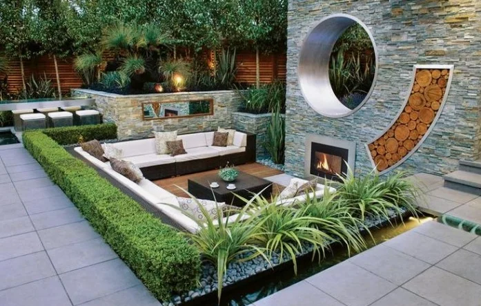 4. أنشئ ركنًا مميزًا مثل أرجوحة، نافورة صغيرة، أو مدفأة خارجية.